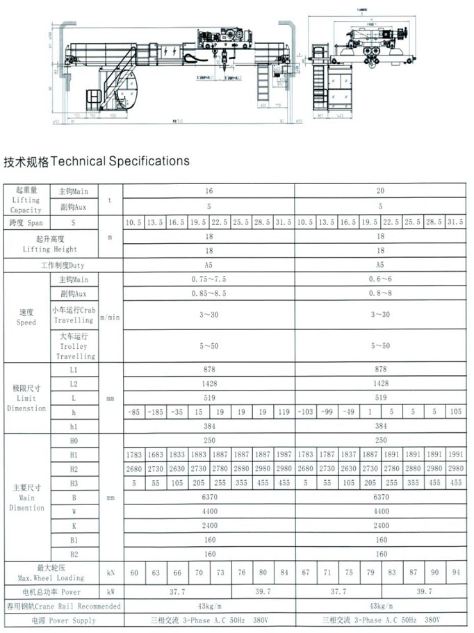 5~50/10t新型吊鉤橋式起重機